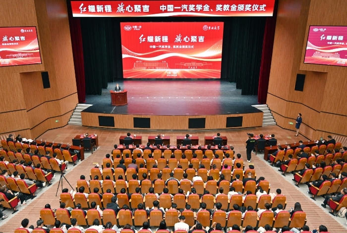儀式上,邱現東、田輝分別致辭,出席儀式的領導為中國一汽獎學金、獎教金獲得者頒獎,獲獎師生代表發言。