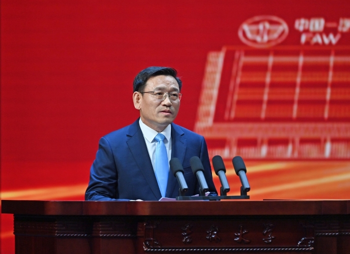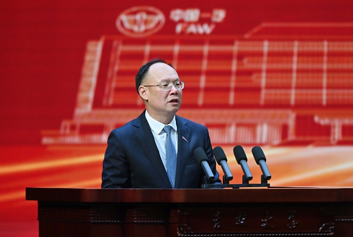 邱現東代表中國一汽向榮獲表彰的老師和青年學子表示祝賀,向長期以來關心和支持中國一汽事業發展的吉林大學各級領導、教職工和廣大同學表示感謝。他表示,作為新中國汽車工業“長子”,近年來,中國一汽深入學習貫徹習近平總書記視察一汽重要講話精神,堅持穩中求進、穩中求轉、穩中求變,整車銷量站穩320萬輛級以上臺階,經濟效益始終行業前茅,品牌價值高居行業榜首,企業轉型升級和高質量發展取得新進步新成果。當前,中國一汽已全面開啟向新圖強、轉型躍遷、高質量建設世界一流企業的新征程,真誠歡迎廣大青年才俊投身中國一汽事業,誠摯邀請更多專家學者參與科研合作項目,攜手向世界一流企業目標進軍。中國一汽愿與吉林大學一道,以“勇立潮頭、永爭第一”的執著,以“人比山高、腳比路長”的豪邁,砥礪前行、奮斗奮進,共同書寫高質量發展新篇章,為以中國式現代化全面推進強國建設、民族復興偉業作出新的更大貢獻。