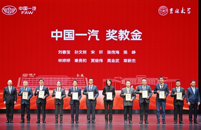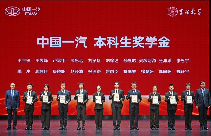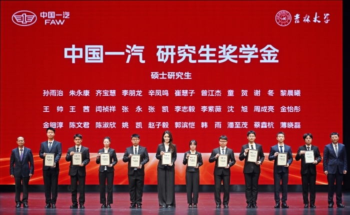 中國一汽與吉林大學同根同源、血脈相連。70余年來,雙方結下了深厚的情誼,在人才培養、科技創新等領域取得了豐碩的合作成果。自2021年設立中國一汽獎學金、獎教金以來,校企合作更進一步,在雙方同心協力、精誠協作下,各項工作取得顯著成效。中國一汽近五年累計招聘吉大學子超2500人,通過共建“紅旗學院”、開展“工程碩博士”聯合培養等方式培育人才超500人,協同開展的燃料電池、智能駕駛等關鍵技術攻關取得了階段性突破,既展現了吉林大學育人興邦的務實擔當,也成為中國一汽人才強企的生動實踐。