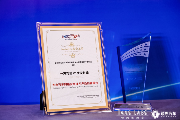 一汽奔騰蟬聯(lián) AutoSec 年度“杰出汽車網(wǎng)絡(luò)安全技術(shù)產(chǎn)品創(chuàng)新單位”稱號(hào)
