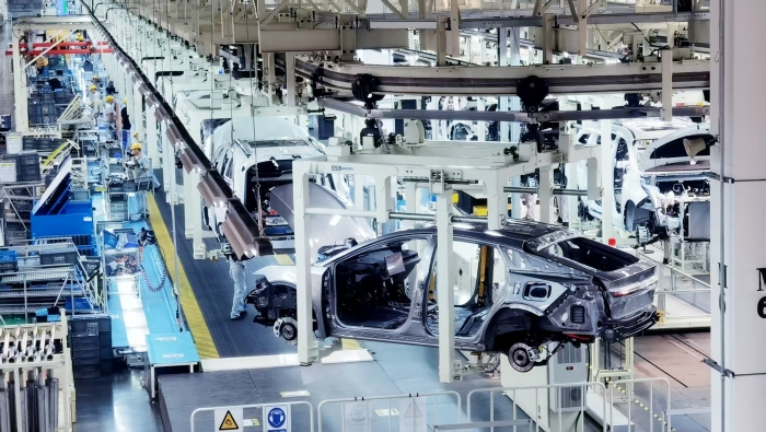 一汽豐田新能源工廠總裝車間底盤生產(chǎn)線的bZ5車身