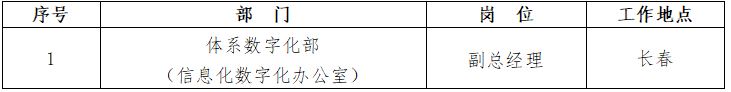根據工作需要,現對體系數字化部(信息化數字化辦公室)副總經理崗位面向社會公開招聘,具體內容如下: